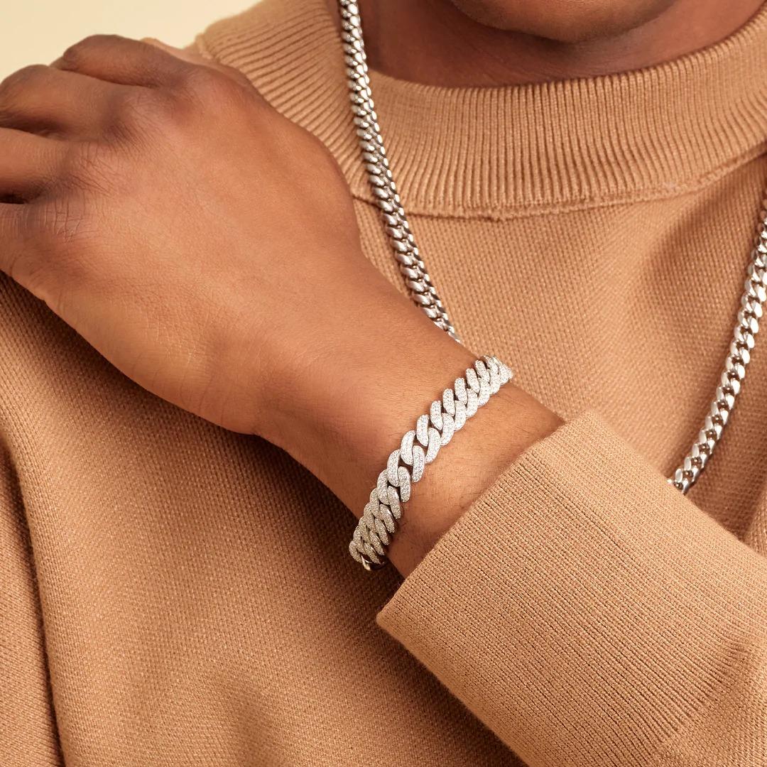 תכשיטי האייס הם המומחיות שלנו! לצמיד הקובני המשובץ באבני סברובסקי יש קסם משלו שאין אחד שרואה אותו ונשאר בלי פה פעור. מיועד לאנשים שלא מפחדים משיא הסטייל! מגיע עם סוגר מאובטח. צמיד זה הוא כל מה שאתה צריך לסטייל היוקרתי ביותר. גרסת הכסף. המידה הקלאסית ומתאימה לגברים (19 ס"מ).