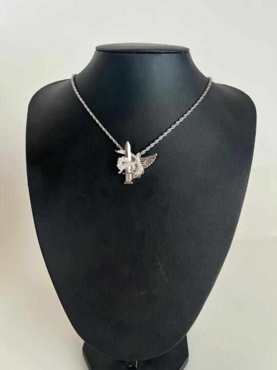 תליון גבעתי, עשוי ציפוי זהב לבן, משובץ באבני סברובסקי.