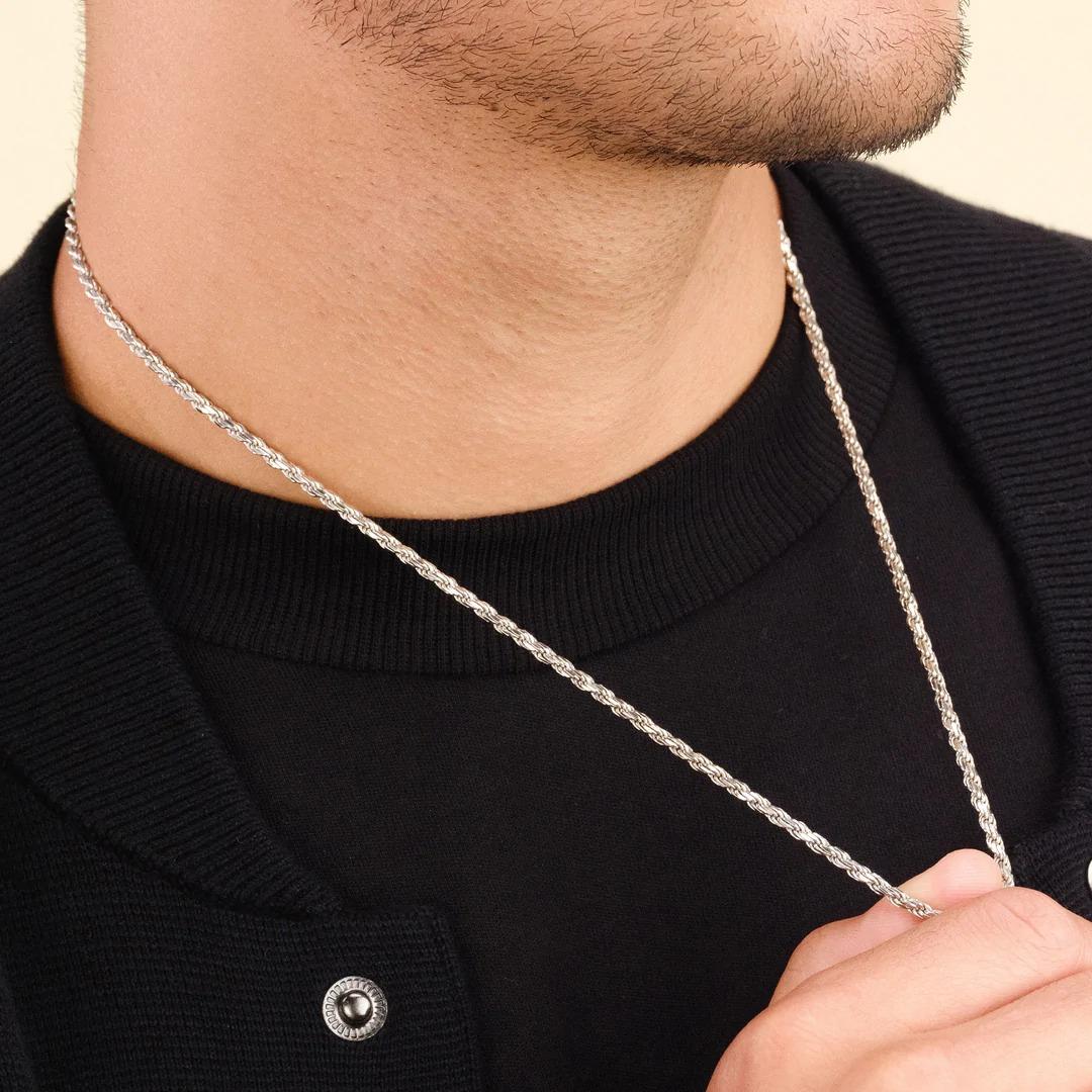 קלאסית, נוכחת ונוצצת לחלוטין. שרשרת החבל הדקה הכסופה היא אחד מסגנונות השרשראות המבריקים והמפוארים ביותר הודות לחוליות המחוברות בחוזקה בחיתוך סטייל יהלום, המתפתלות בצורת חבל ושמחזירות אור בכל זווית.