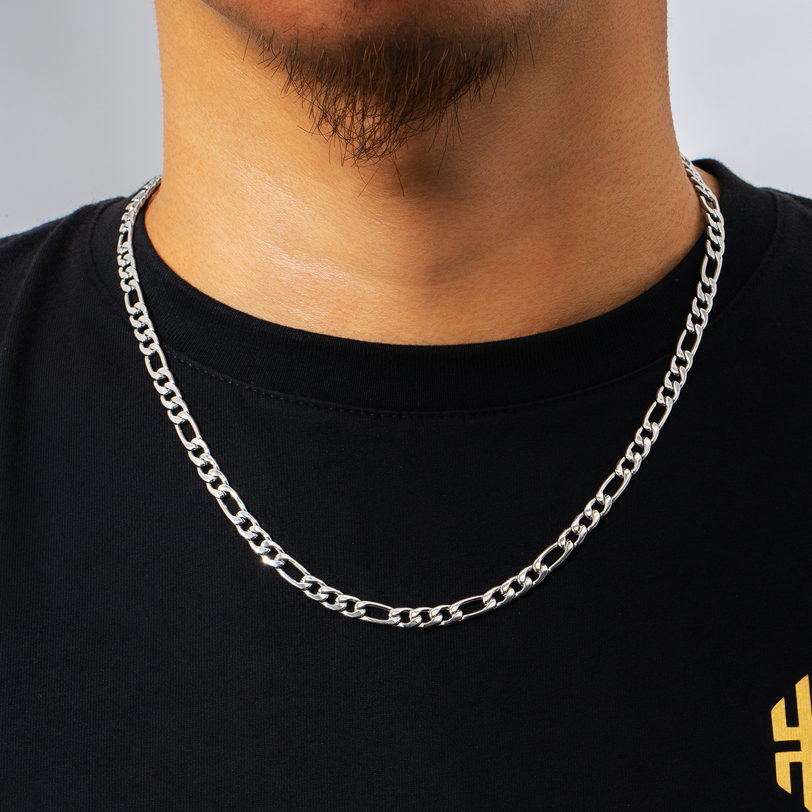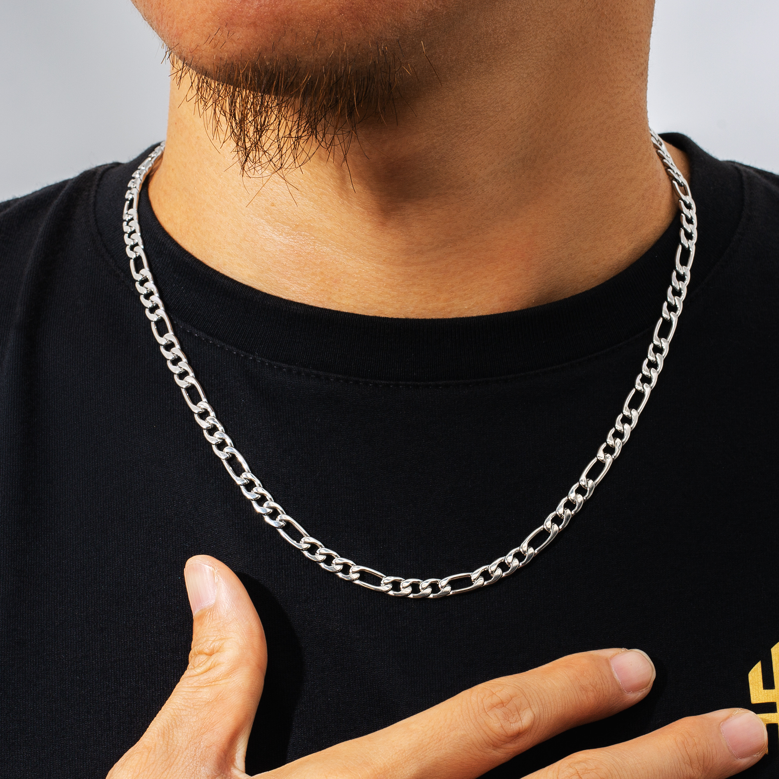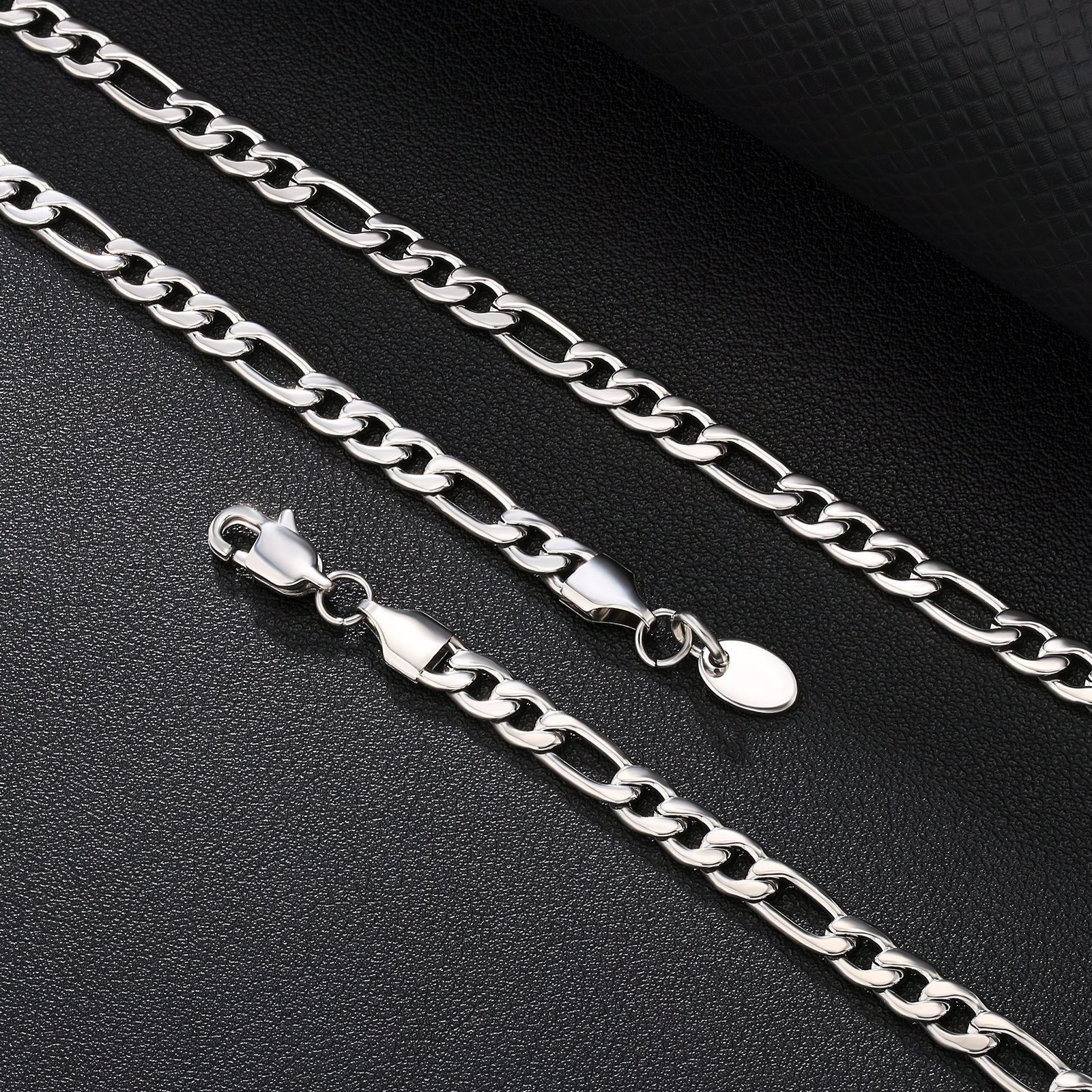 שרשרת פיגארו זהב לבן 18K פרימיום סטיינלס סטיל 316 – קלאסית ונוצצת, עם חוליות אליפטיות ומרובעות לסירוגין ליצירת דפוס פיגארו ייחודי. לוק אלגנטי ובולט שמתאים לכל אאוטפיט ואירוע.